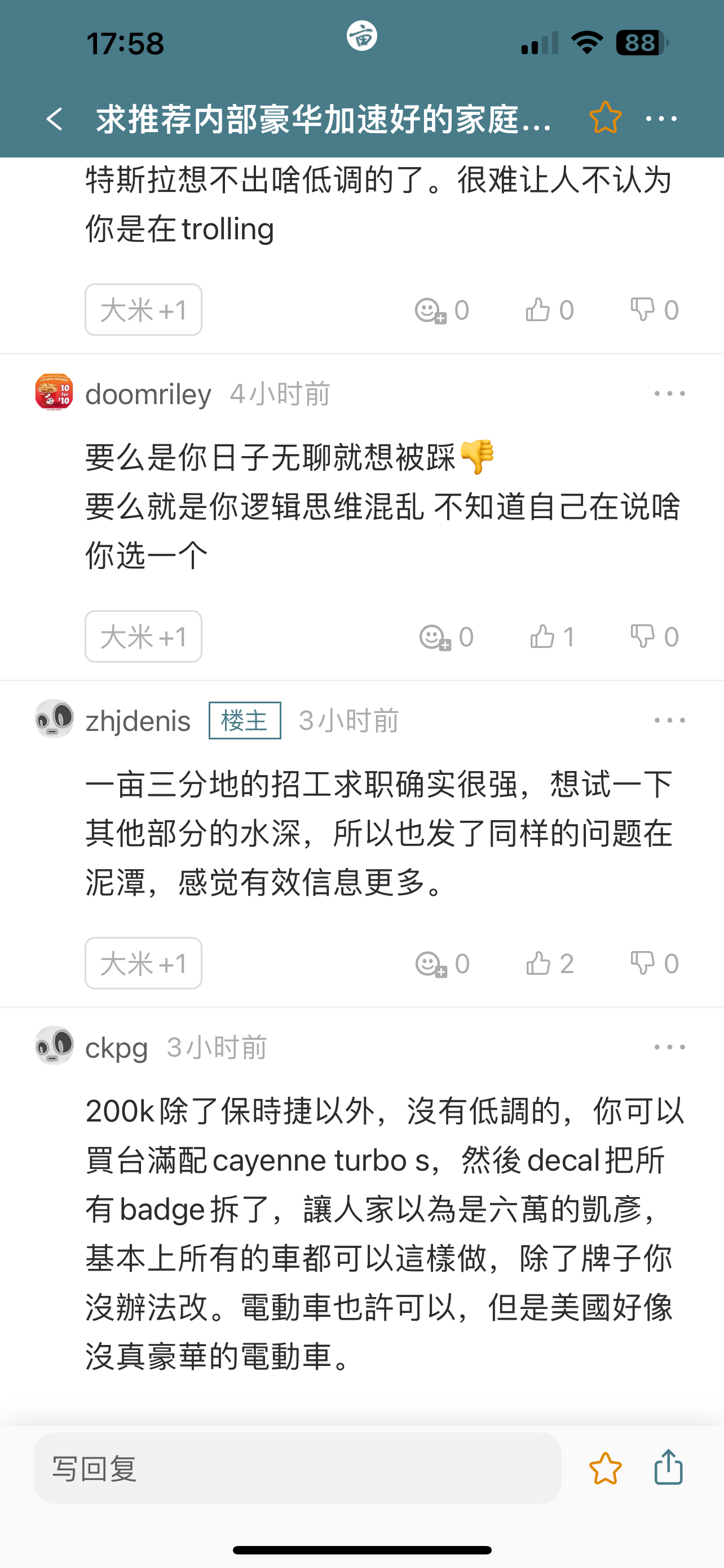 虽然特斯拉不错,但是20w预算的我觉得还是别买电车了,sq8我觉得就完美符合要求了