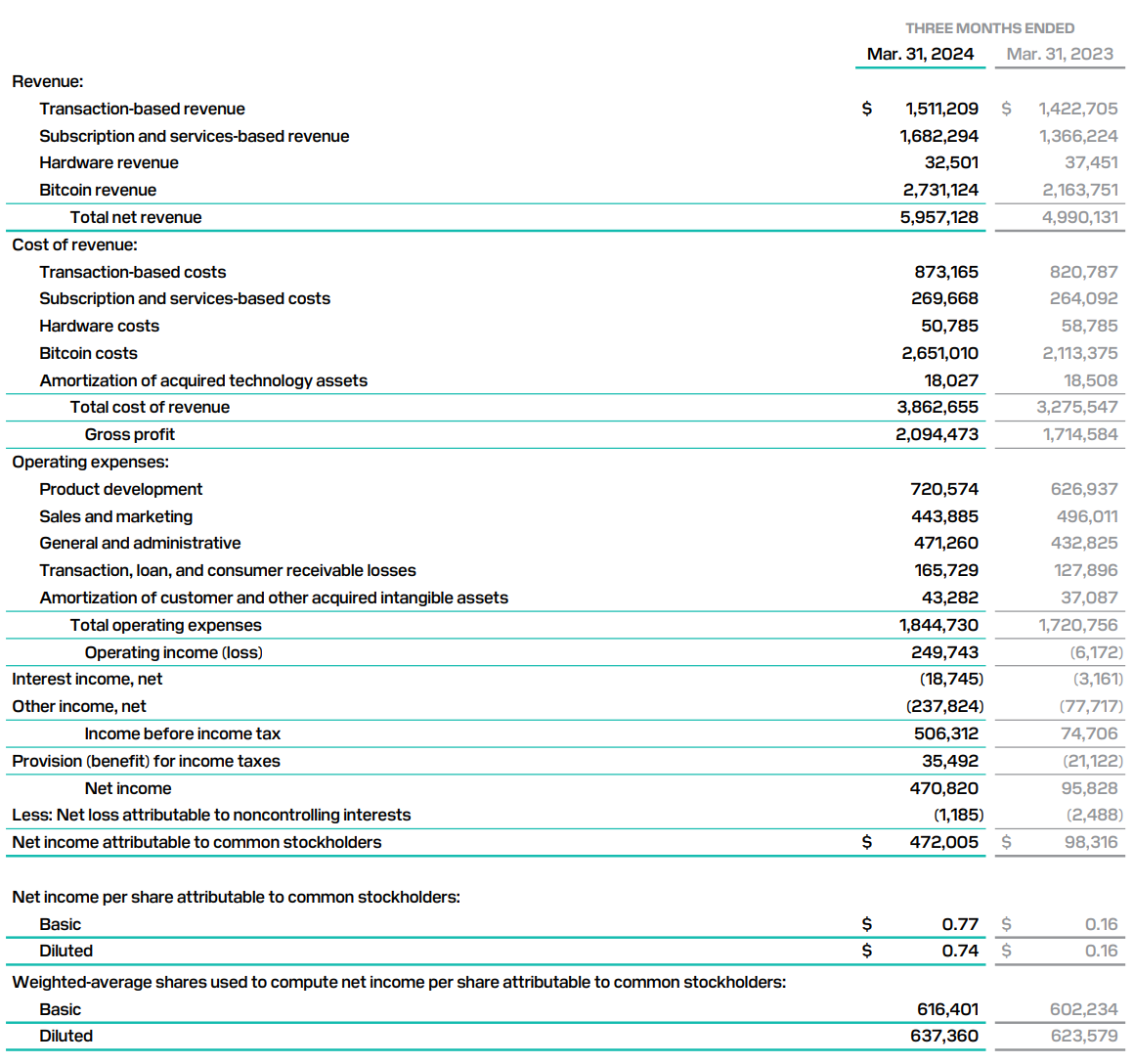 也就是说,SQ 这一季业绩的大幅改善,一半是基于控制了 operating expense 的增长,一半来自于比特币价格的大幅增长