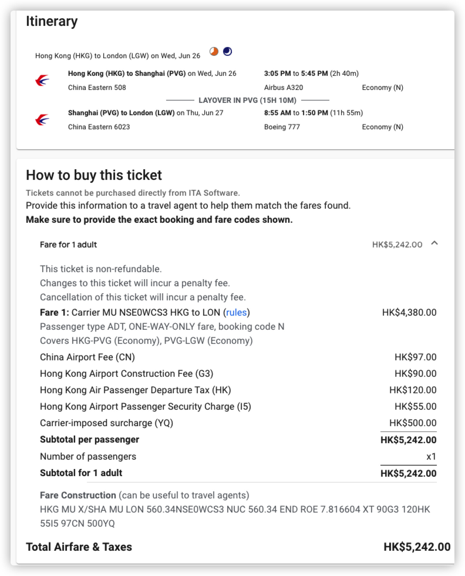 就上面的LGW-PVG和LGW-PVG-HKG,航司自定的YQ,就知道有多可怕了。