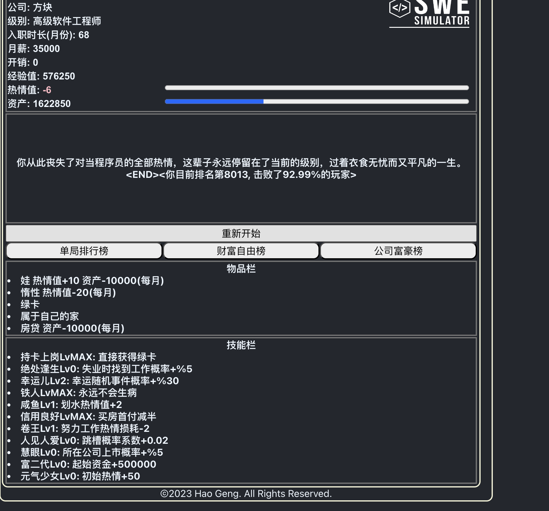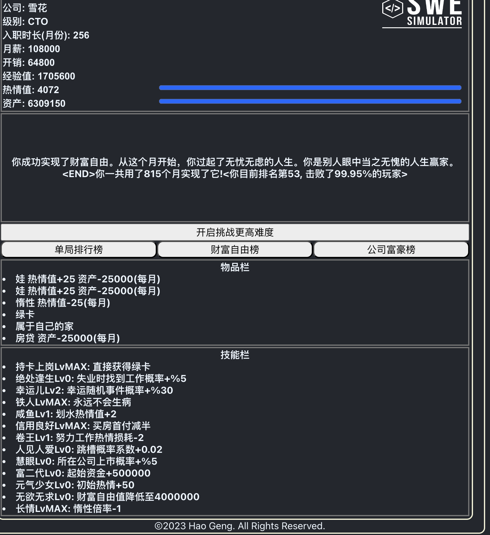 SOS 我靠摸鱼+跳槽也FIRE了一次,但是排名低好多,可见世界最终还是卷王的天下 ![]()