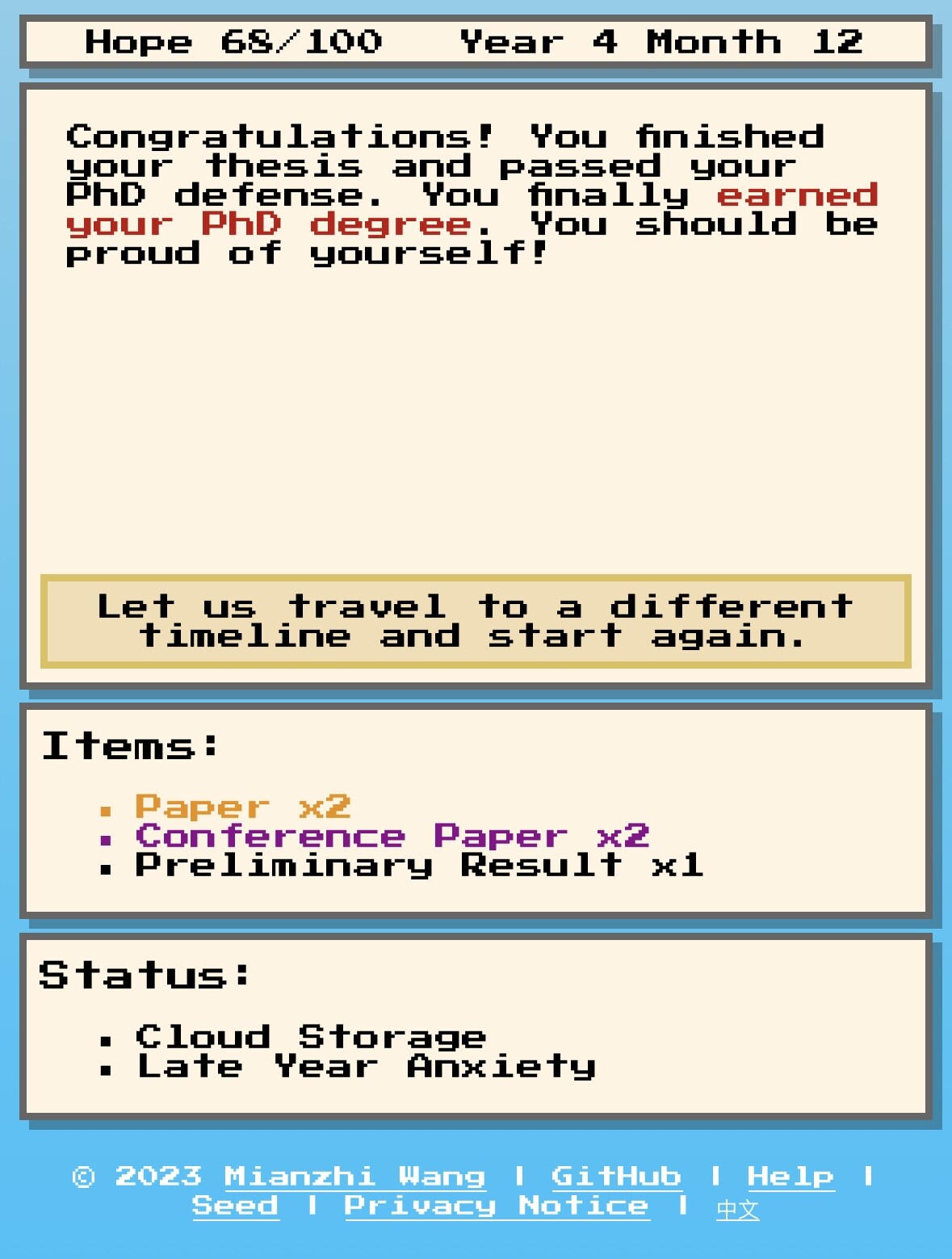 顺手放一个phd simulator,一个月读一次paper读完还有idea,真好