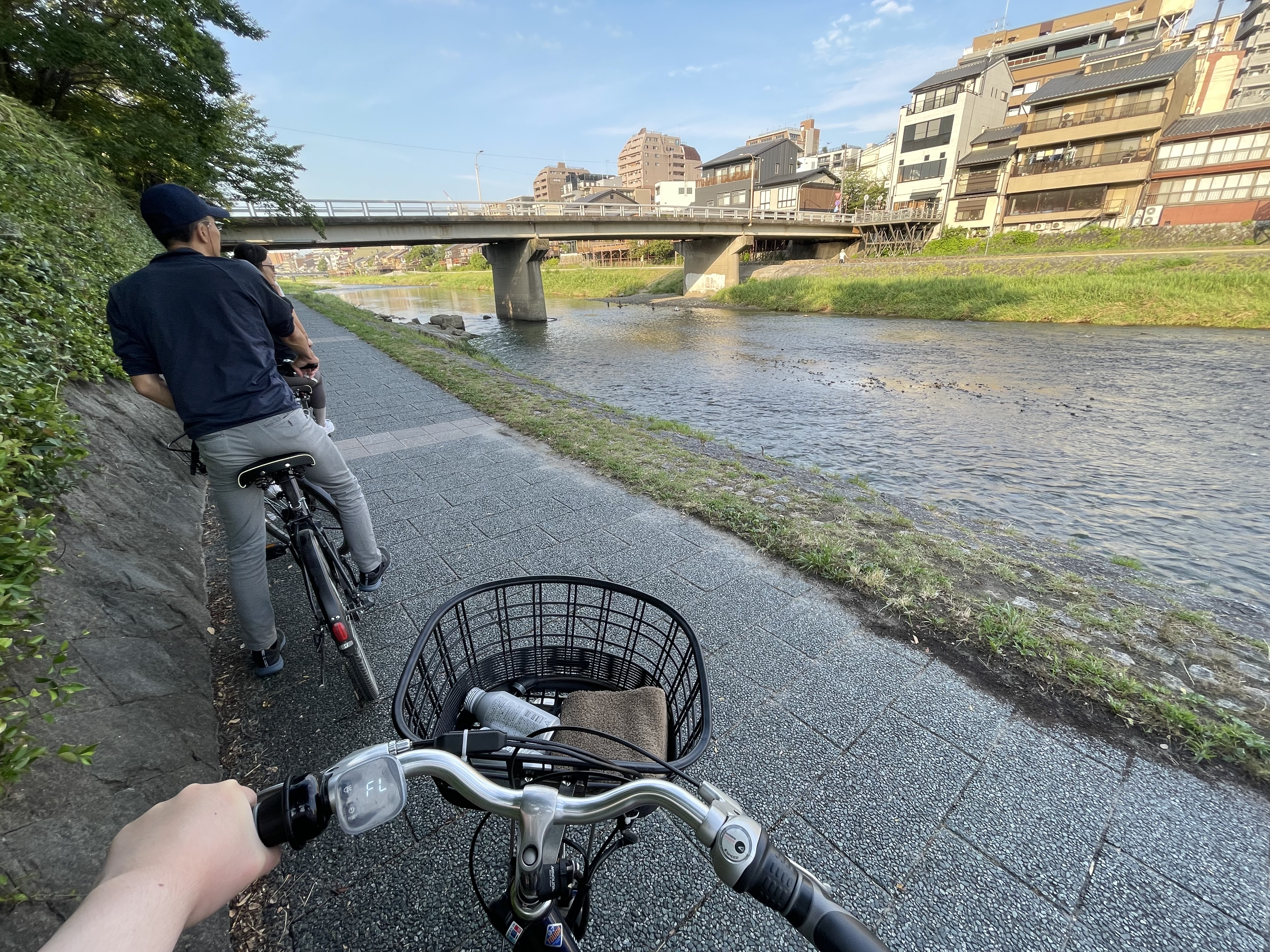 第二天早上六点半起来参加这个活动,我们当时是有六个人,自行车是电助力的所以上坡完全没问题,但是还是有点大和沉,要是骑车苦手可能会有点吃力。小姐姐会带领大家沿着鸭川河骑到神社,给大家20min左右自由活动时间,再带着骑回来。时间很早所以气温也还能接受,车骑起来还有凉风。鸭川河边有挺多段没有护栏,再加上会有晨跑的人要避让,如果对自己骑行技术没有自信的话稍微还是有点危险。总计时间一个半小时-两小时。