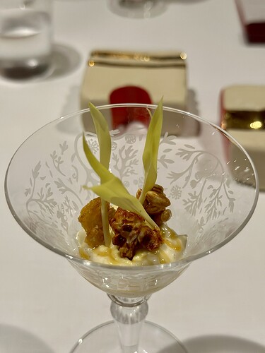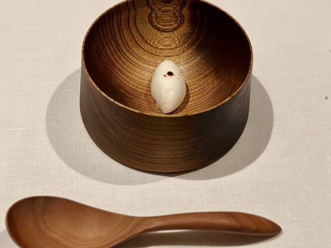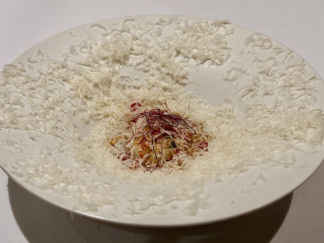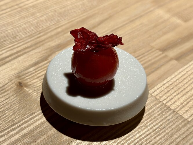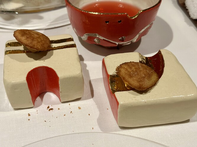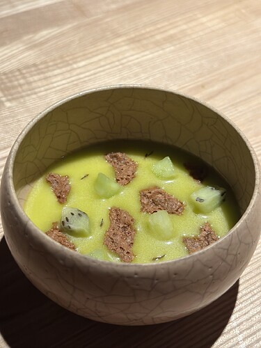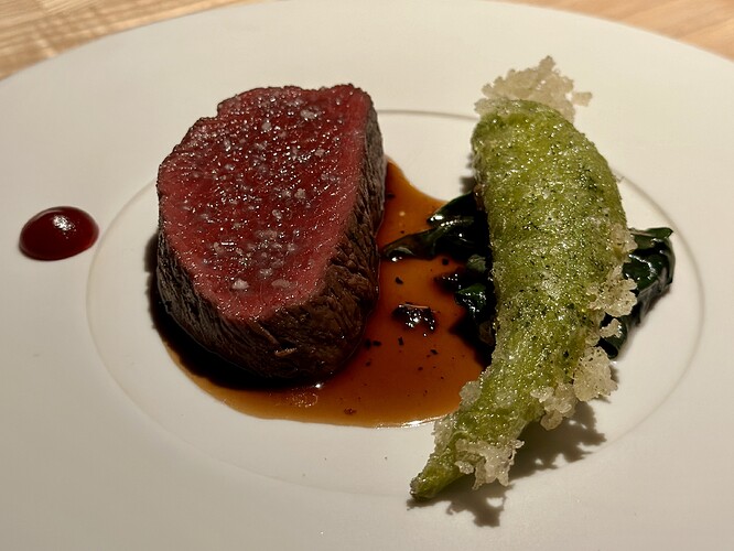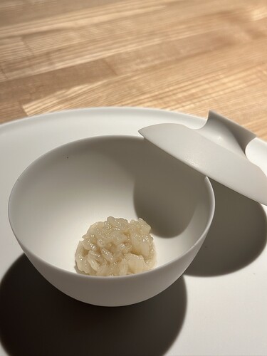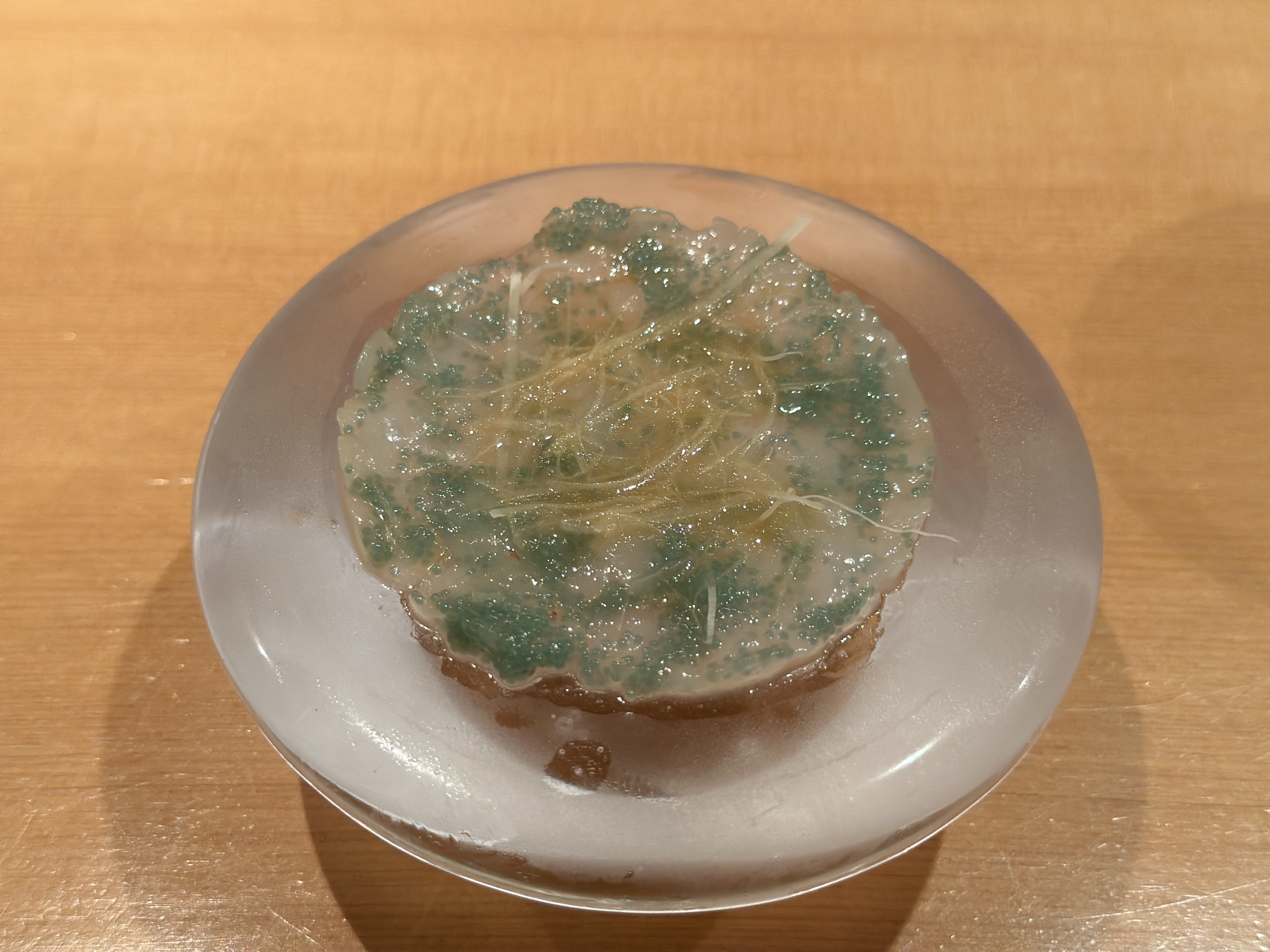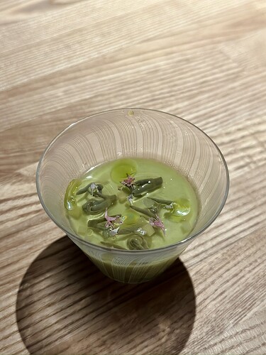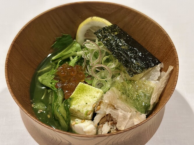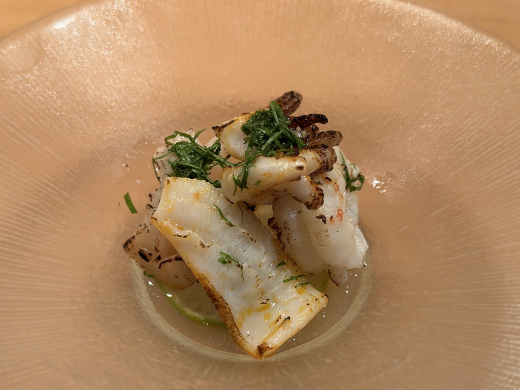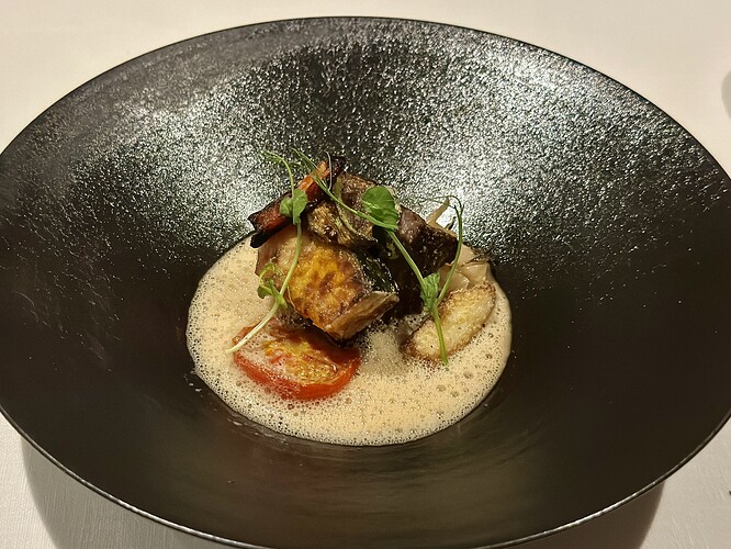 Respiracion,日本第二的日式西班牙餐厅。第一道甜虾的菜品正如其名,虾籽,虾脑,还有虾肉,三重的鲜甜带来了强烈的冲击。Respiracion在蔬菜上的造诣及其了得。一节西葫芦做成慕斯冷吃,艾草炼成精油增香,莼菜过着啫喱,是一道菜。另一节西葫芦热吃,在炭火上烤出焦香激发甜感,菠菜包裹的火鸡丸子散发出饱满的肉香,又是另一道菜。随后一道蔬菜料理,主食材茄子用奶酪熟成数日,辅料选择熊肉肉酱增添几分狂野。主菜前的清口小吃是雪利酒腌制的小番茄,酸酸甜甜特别爽口。我最喜欢的是菜品是第一道甜品,能登衫。酸奶油铺底,一层抹茶,一层奶冻,一层猕猴桃果酱,再淋上能登衫的树油。杉树的清香升华了牛奶的醇厚,抹茶的浓香,猕猴桃的酸甜,所有味道糅合得恰到好处,好吃。这家店曾是米其林二星,如果米其林恢复北陆指南的话,这一家店一定会有一颗绿星。美中不足是Paella中生蚝的风味过于强烈,打破了味道的平衡,感觉一般。也是一家想要再次拜访的餐厅。