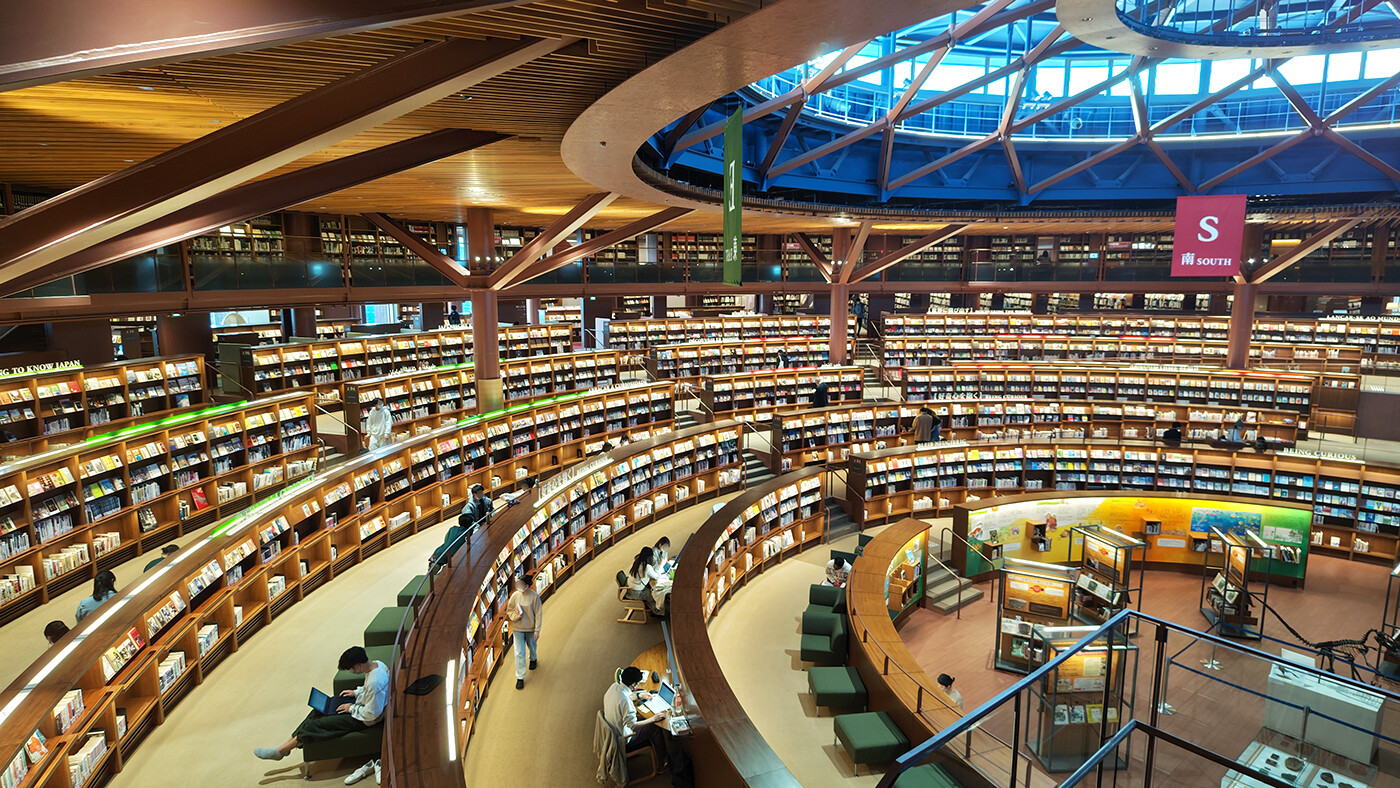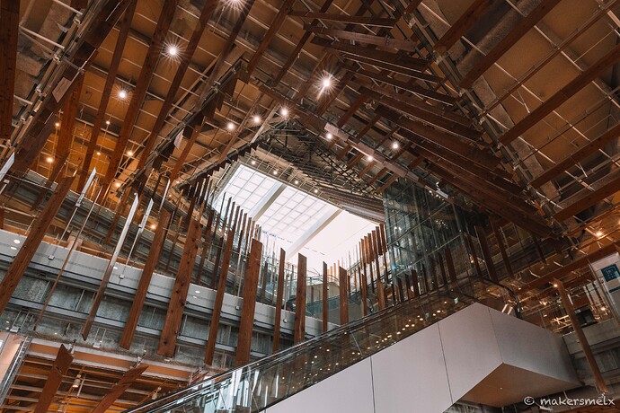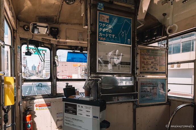 富山的路边电车大都是些老得厉害的车,铁皮褪了色,座椅的皮磨得也差不多了。市中心有一家玻璃博物馆,同时也是富山市图书馆。