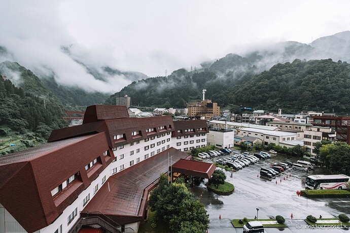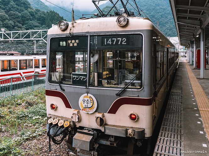 宇奈月温泉有一个开放式的观光小火车,可以近距离欣赏黑部峡谷,还是挺有人气的。我们去的天正好下暴雨,所以没坐成。住的温泉旅馆是 @RJTT 推荐的 宇奈月温泉やまのは,吃得好泡得也舒服,总体体验很棒。旅馆离宇奈月温泉车站很近,露天温泉能看黑部峡谷,早晚两顿饭都是自助。