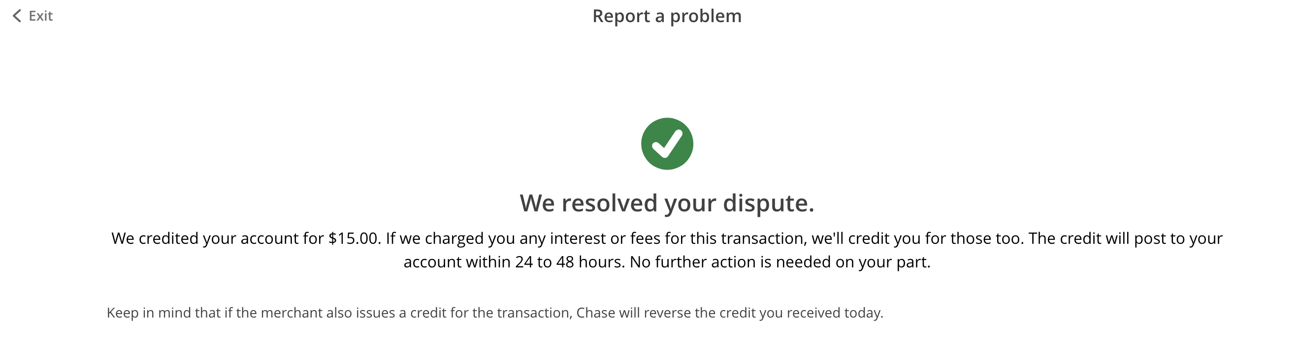 Chase系统都是这样给了credit. 这样就没有问题了吧?