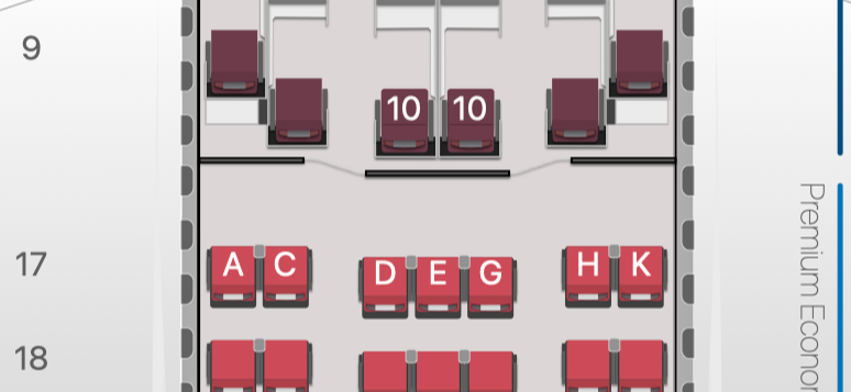 那JL777-300呢?PE的第一排会更好还是更差?尤其是2-4-2里面那个中间4个座位联排(两边靠窗位置选不了)