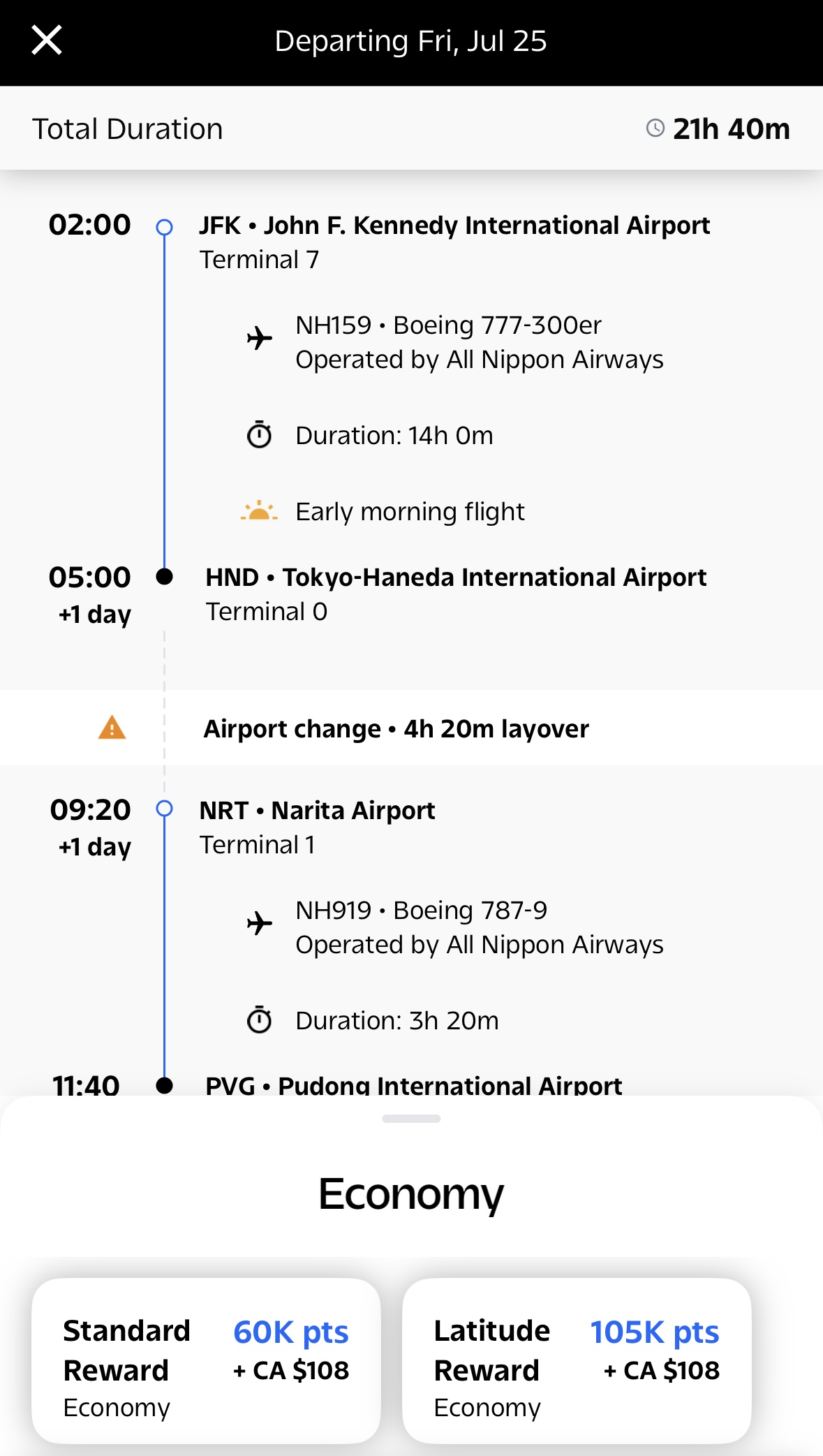 MR点数充足还可以考虑临期ANA经济舱(放票规律是D-10),JFK-HND-HKG/PVG/SZX常年60K Aeroplan点,Lifemiles便宜些(47k)但是availability不如AC且退票麻烦