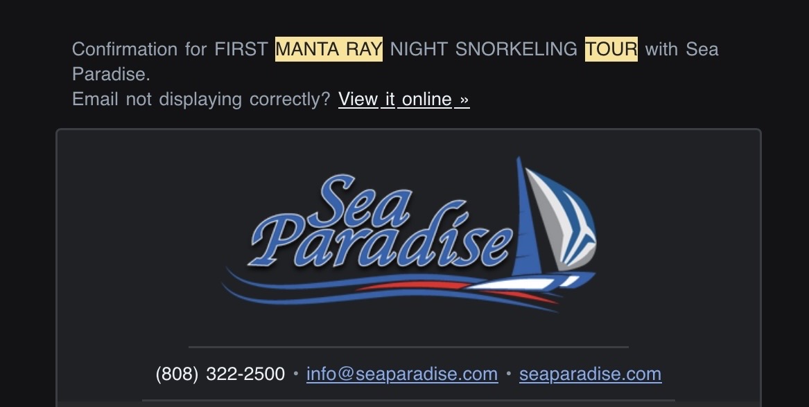 我们定了个周一的魔鬼鱼tour 一个礼拜都没机会下海 天天大浪 tour公司每次都不提前发邮件 都是开到了再给我们发邮件
