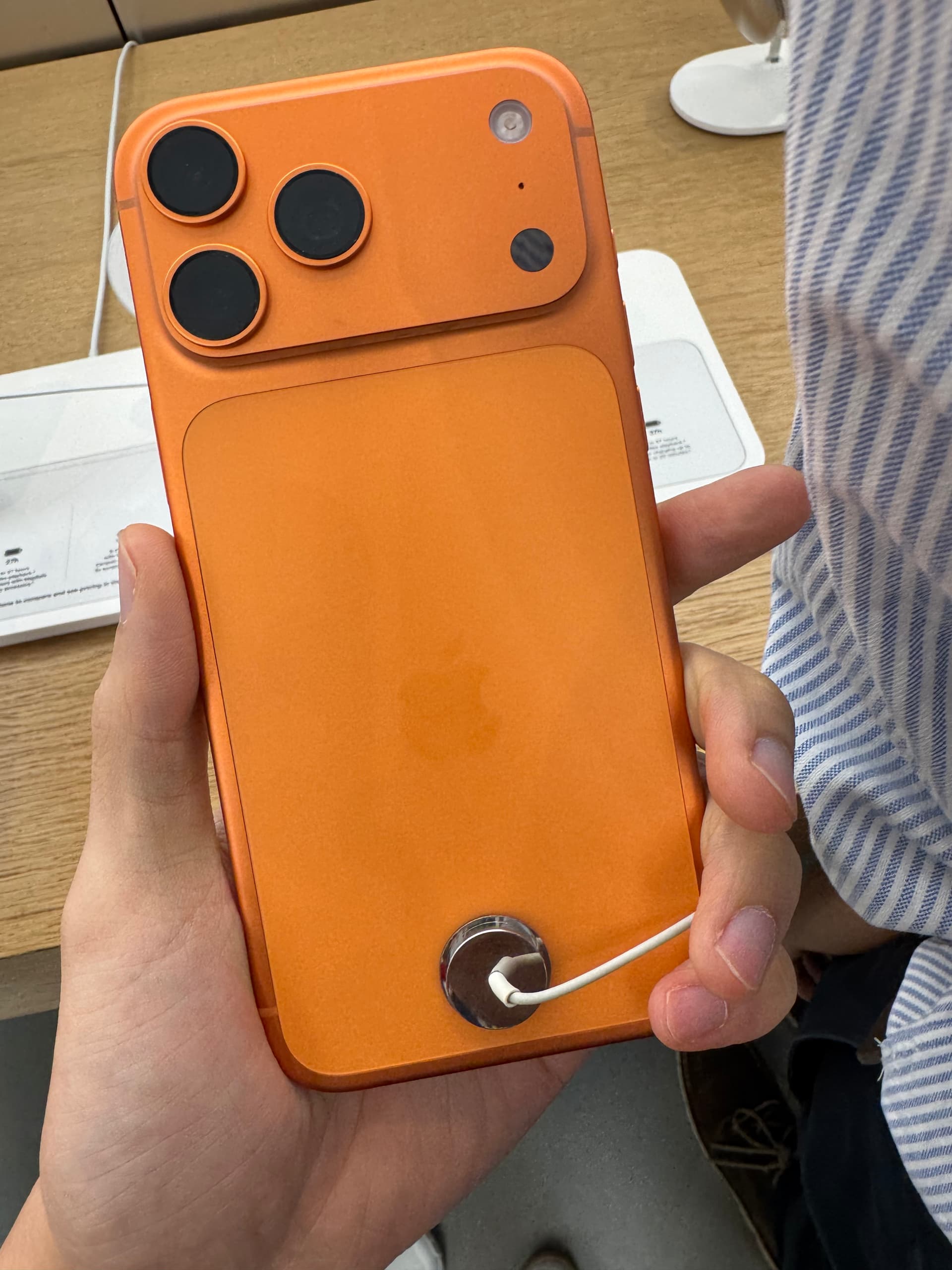 今天去自提了17pm银色,在店里等待试玩的时候发现,17 pro/pro max的蓝色展示机背面已经有明显划痕了,这才摆出来几个小时吧 ![]()