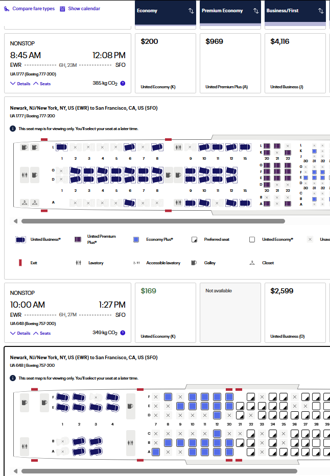 Business class is marketed as Polaris on transatlantic flights on single-aisle Boeing 757-200s, used on some transcontinental and shorter U.S.-Europe routes. However, it is far from the actual Polaris, with a 2-2 layout and older seats.