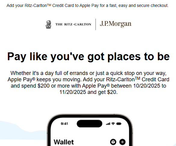 前两天刚用了IHG加apple pay的200-20小羊毛,今天又收到了Ritz的平行offer。不知道茶色这波会不会拓展到所有联名卡。