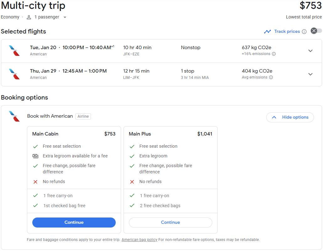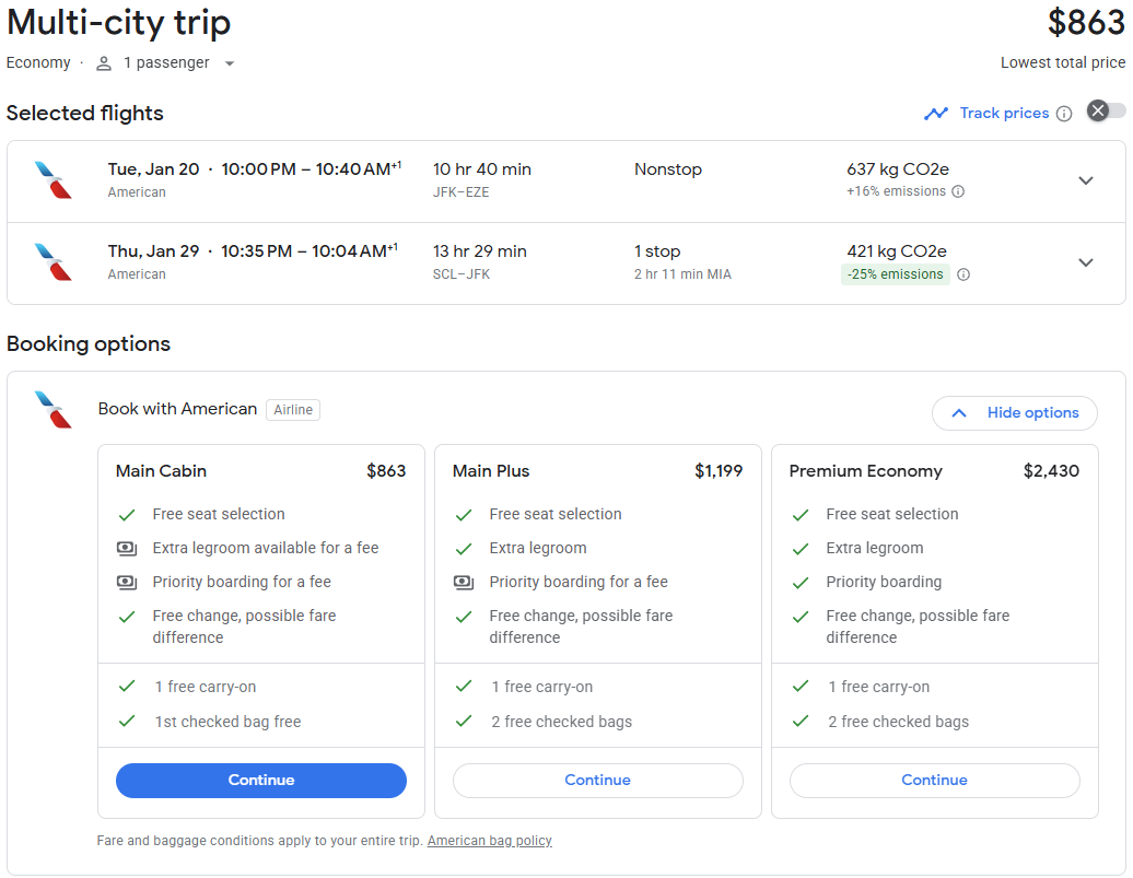 几个月前定的明年一月AA直飞JFK-EZE经济舱20K+$5.6,当时觉得好便宜