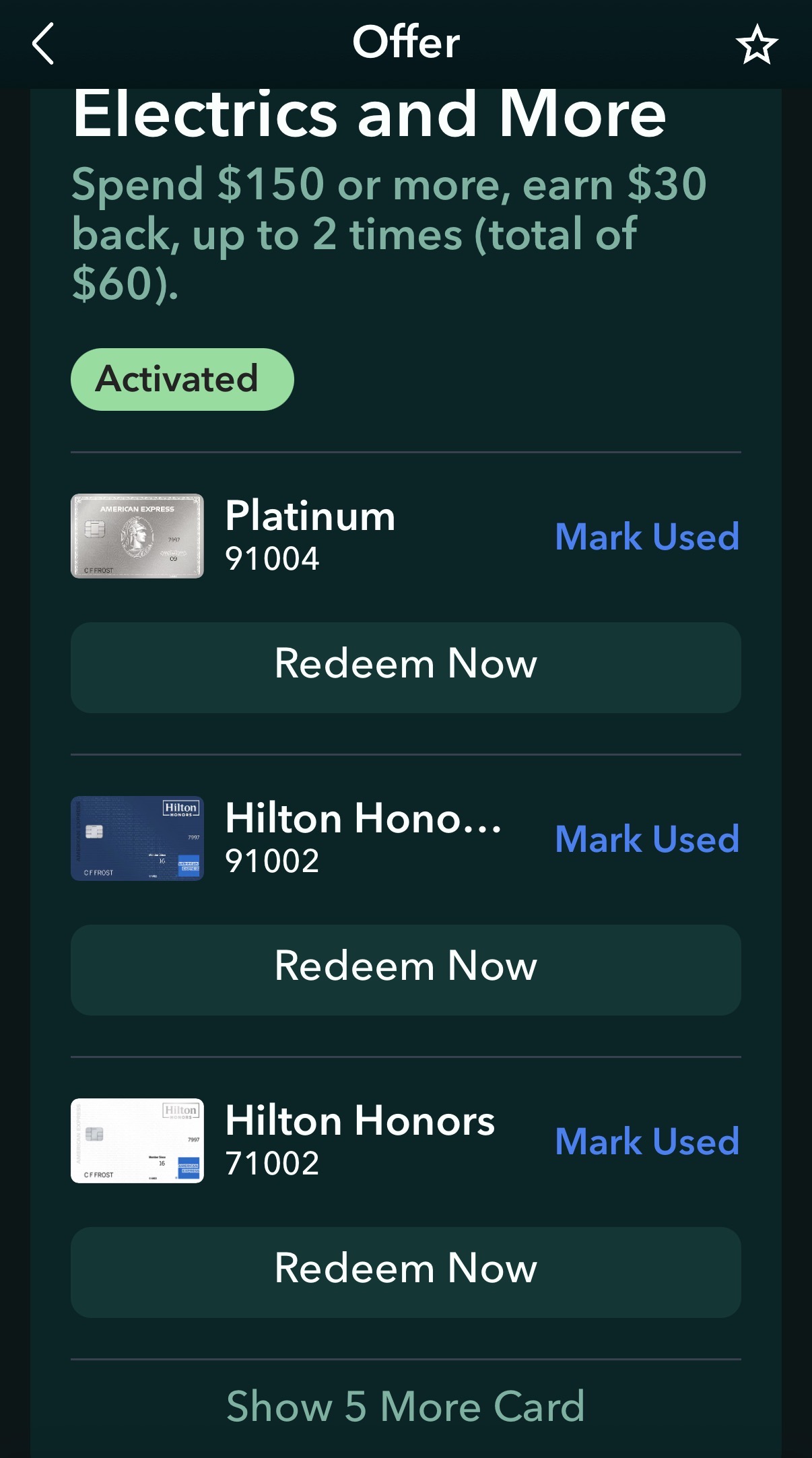如果你加了amex的账号,自动加到所有卡(前提是卡上有offer)